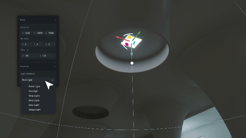 Добавлен новый источник освещения Disc Light с мягким рассеиванием, доступный как в D5, так и при синхронизации с 3ds Max и SketchUp. Поддержка IES-файлов, точная настройка направленности и расширенный контроль экспозиции позволяют добиться реалистичного освещения при любых условиях.