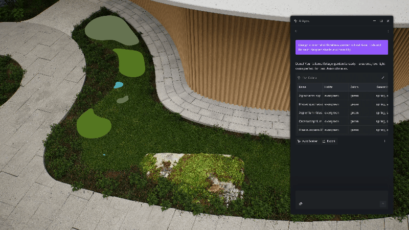 Функция SmartPlanting автоматически подбирает растительность с учётом климата и географии участка. От тенелюбивых кустарников до современных минималистичных садов — ИИ создаёт ландшафтный дизайн за считаные секунды. Идеальное решение для архитекторов и ландшафтных дизайнеров, работающих в сжатые сроки.