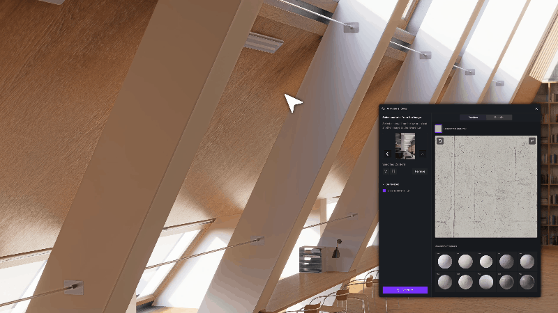 Просто загрузите изображение — и система на базе ИИ автоматически сгенерирует физически корректный PBR-материал. Кроме того, D5 предложит подходящие ассеты из своей библиотеки, что особенно удобно для быстрого прототипирования.